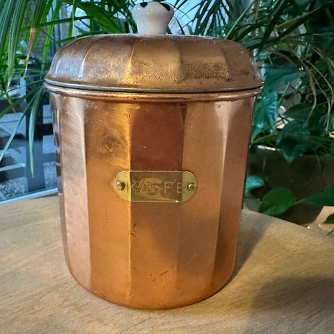 Vintage / retro stor flaskeåpner i kobber m/ tekst, selges