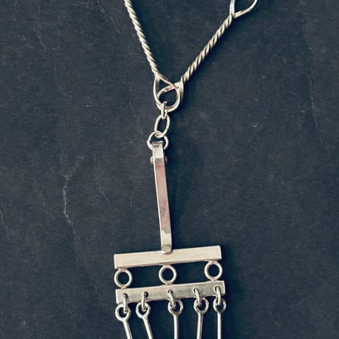 2 sølv 925 , resirkulert brun og sort skinn med charm i stein og sølv. Karin A.