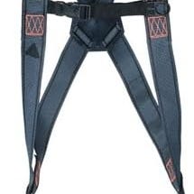 Sele med forankringspunkt i rygg og bryst, integrert støttebelte, brede lårstropper og justerbare skuldre og lårstropper.