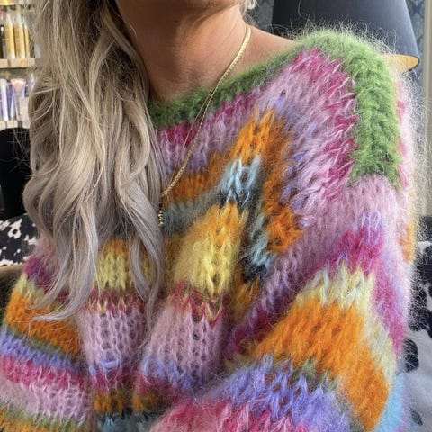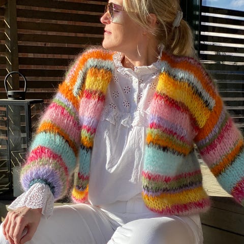 Strikker Sommerfryd genser eller Sommerfryd Cardigan i originalt garn og oppskrift fra Knitteriet på bestilling. Strikkes i str S-XL