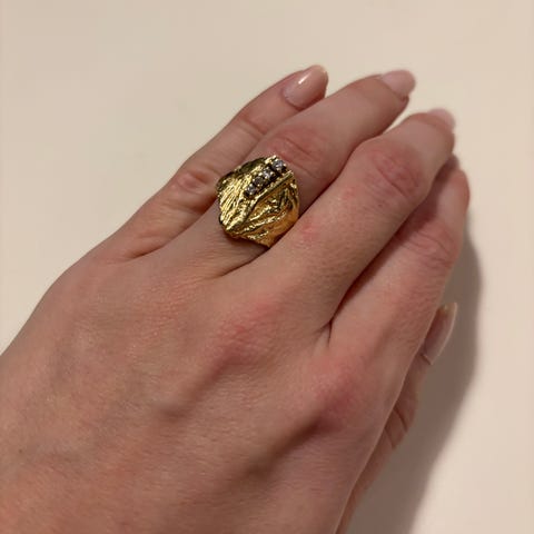 6 brillianter (diamanter) tot ca 0,045 ct H - Si - Fair, lite brukt størrelse 59 vekt 5,6 g