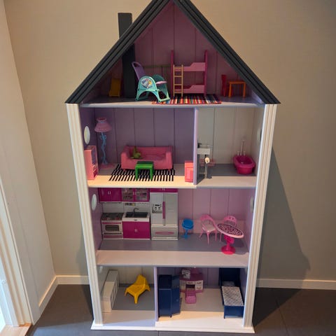Dukkehus i to deler til Barbie, eller lignende dukker.