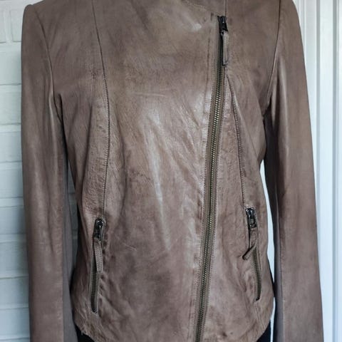 Pent/lite brukt, ingen slitasje! VOICE OF EUROPE: Partier m/semsket skinn, gullfargede glidelåset også på ermene. Str. M. Kr. 1300,-. Norgespakke m/ sporing 135,-. PostNord 69,-.