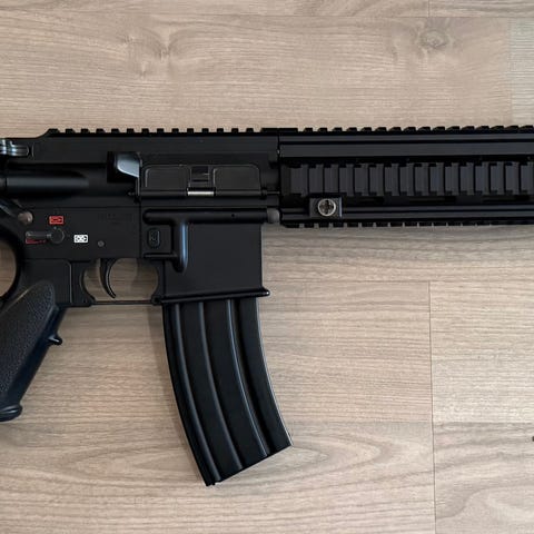 Batteri settes inn i kolben bak og magasinet fylles med 6mm BBs. Hop-up kan justeres slik at du kan endre kulebanen og få god presisjon.