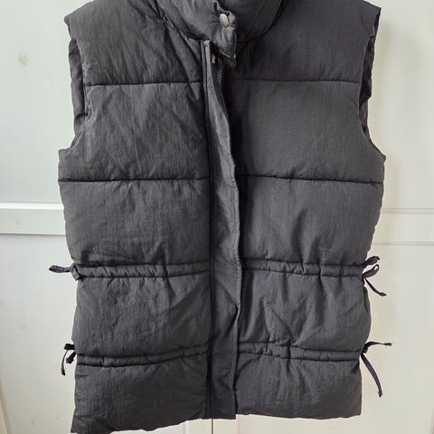 Boblejakke fra Cellbes. Sidelommer med glidelås. Glidelås og trykknapper i lukking.Stor krave. Sort. Litt blank.Størrelse skal være 54/56. Men liten i Størrelse. Nærmere en str.52/54. Kan sendes på kjøpers regning.