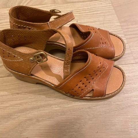 Selger et par med retro skinnsko/sandaler i str 30 fra 70/80-tallet. Skoene er pent brukt og har ingen synlig slitasje. Selges til 200kr.