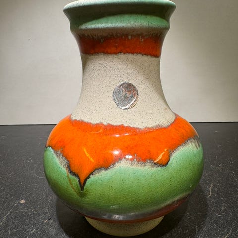 Vakker liten vase i pent brukt stand, små spor av användning. Gulldetaljer. Se bilder.