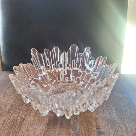 Vintage håndlaget krystall askebeger/skål fra Hadeland Glassverk. Ingen skader. Nautilusserien og Design av Willy Johansson fra 1960/70 tallet. Ca. 1900 gram tungt. Diameter 16 cm.