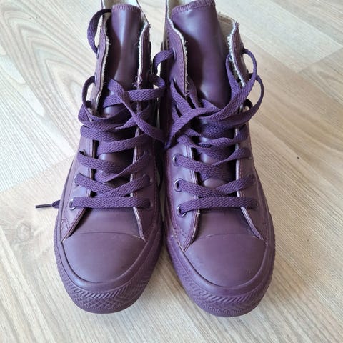 Kjempe fine burgunder converse sko i skinn. Kun prøvd på inne. Ellers ligget oppbevart i skapet. Str 6 (tilsvarer str 39 ca) ble for store for meg som bruker 38/39