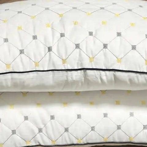 Nytt House Doctor sengeteppe og putetrekk med paisley mønster. Vatert sengeteppe har sølvbord på den ene siden og sølvmønster på den andre siden. ca 140x195 cm. 2 stk putetrekk 40x60 cm (vist på bildet med 50x70 cm innerpute)
