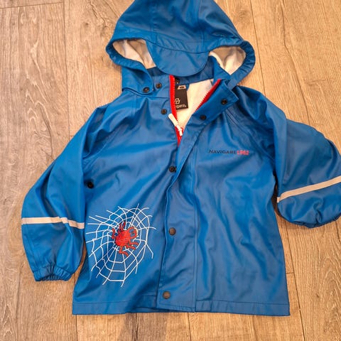 Myk og varm regnjakke med fleece-for. Stramming i nedkant og hette, avtakbar hette, refleksdetaljer.