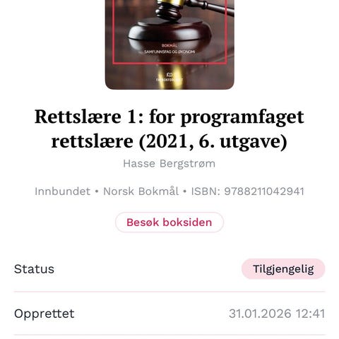 Felles Lovsamling for Rettslære 1 og Rettslære 2 studiespesialisering, Vidr skole fra Fagbokforlaget, Hasse Bergstrøm 2016/2017. Kr 20. Ny Kr 259. Noen uthevinger ellers pent brukt. Kan sendes evt avtale overlev Oslo. Har Vipps. Dur og røykfritt hjem