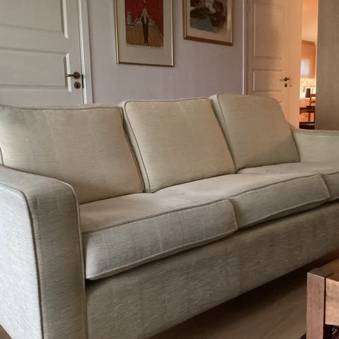 Kjempefin norskprodusert Stordal sofa i beige ullstoff. Dette er 3,5 setere som gir god plass til 3-4 gode venner.