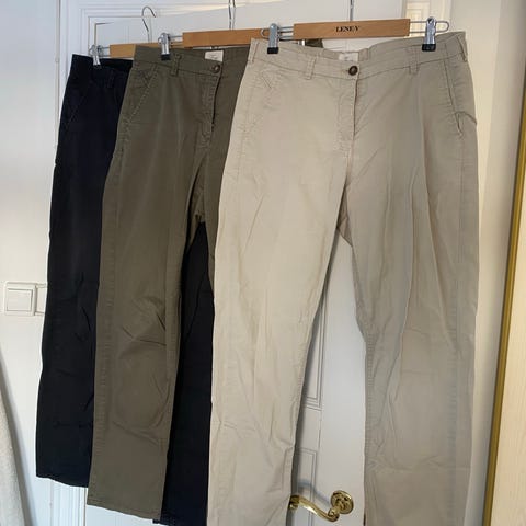 Blå avsmalende Tara chinos str. 38 i kraftigere bomullsstoff med stretch