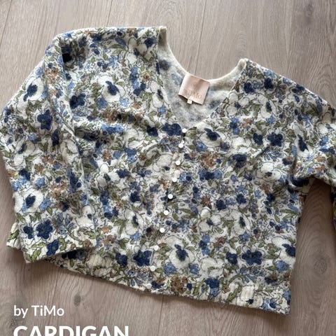 Superlekker cardigan med blomstermønster i front. Små puffermer og trukne knapper70% Cotton, 20% Wool, 5% Alpaca, 5% NylonJessica er 173 cm og bruker str S