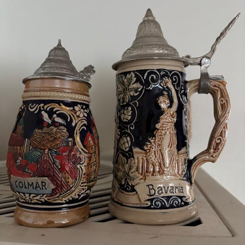 Sydeuropeisk ølmugge 1 1/2 liter med ølkrus. Og en saltbøsse
