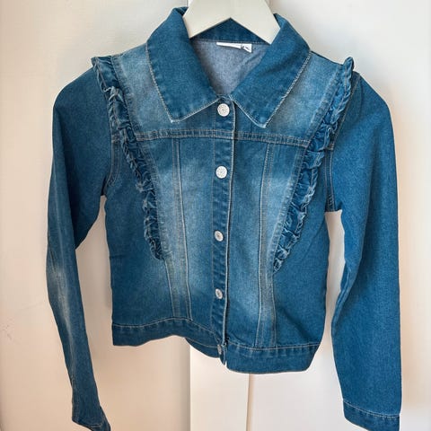 Fin lyseblå myk dongerijakke fra HM. Str 152. Pent brukt.