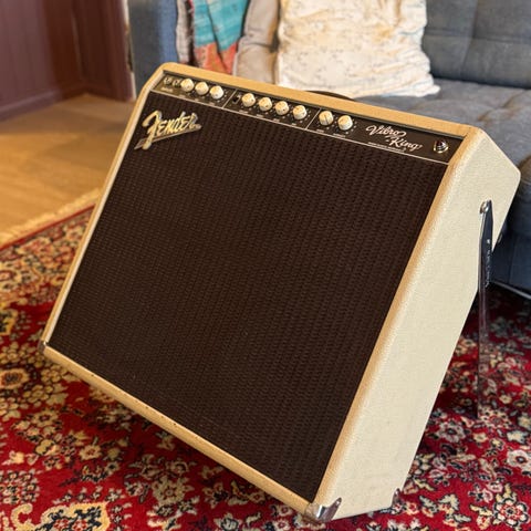 Denne er fra uke 14. 1965- altså denne kan ikke regnes som pre cbs, selv om alt med ampen er akkurat som det var før CBS kjøpte Fender i Januar 1965! AA764 kretsen er legendarisk, får du en reverb i front av denne ampen så har du det du trenger for å spille det meste! Vibrato/Tremolo fungere akkurat som det skal, uten skurring i pots (pr dags dato). Ampen bærer preg av bruk, men den er ikke mishandlet! Mangler en liten del av panelet på bakside, i følge forrige eier skjedde dette i et aldri så lite uhell i studio!