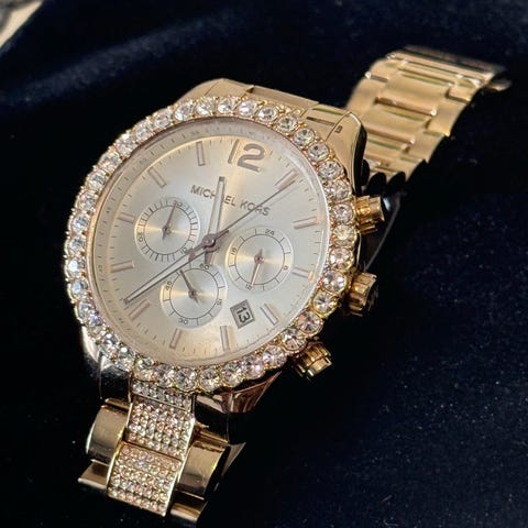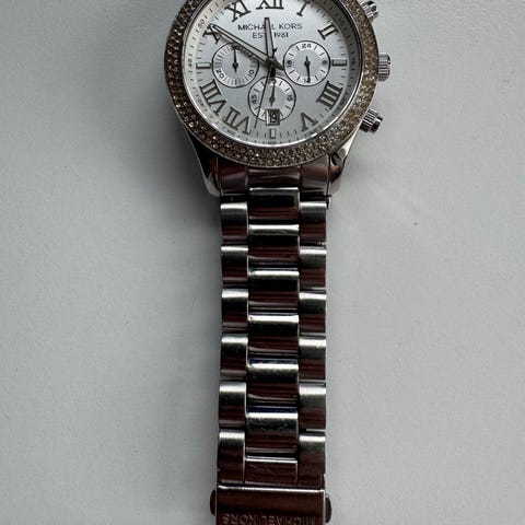 Lekker Michael Kors klokke. Kjøpt i Italia. Trenger nytt batteri. Synlig brukt/bruksmerker, prøvd å få disse fram på bildene. Har dessverre ikke eska eller kvittering. Klokka selges som den er.