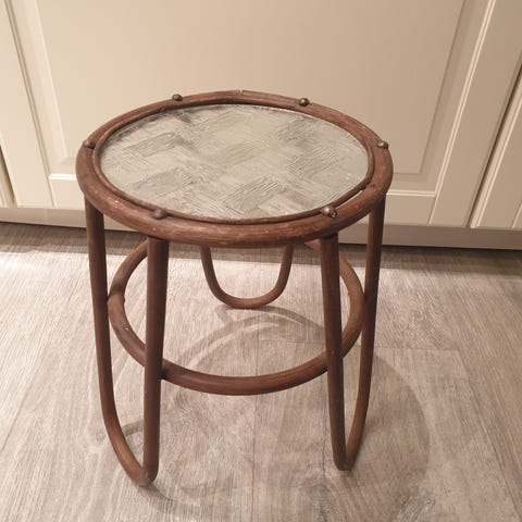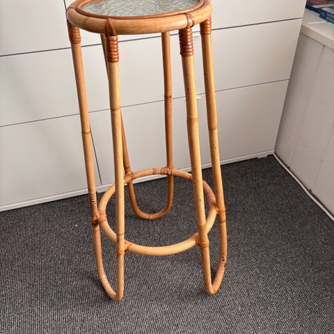 Lite bambus(?)-bord selges. Kan benyttes som sidebord, pidestall mm