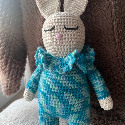 Håndlaget heklet, Lali Lala Lupo kanin høyde 49 cm. Kan vaskes til 40 grader.