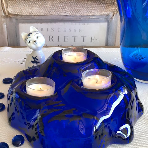 Vakkert koboltblått glass son det er vanskelig å få ordentlig frem på bilde.
