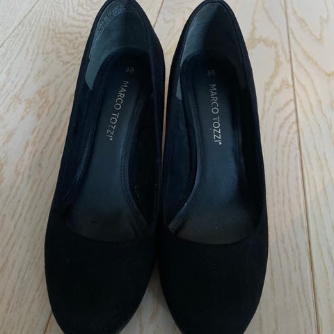 Pent brukt og god kvalitet. Kilehel, marineblå farge, materiale fremstår som semsket skinn