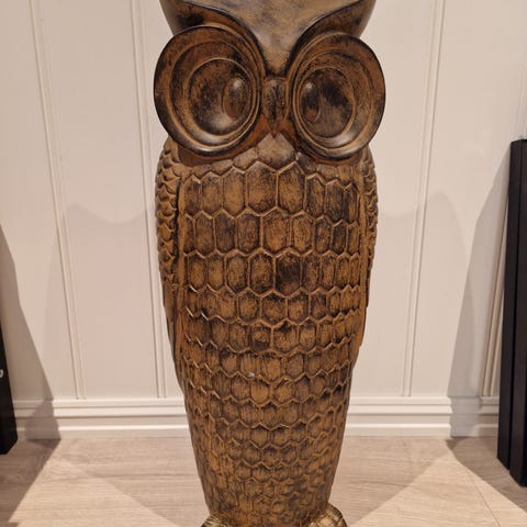 Ugle utskåret i tre med speil.