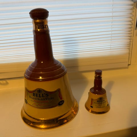 Minikanne fra Bavaria, hvit med på hver side ett blomst, en gul og en rose. også gylden kant (litt slitt). 6 cm høy.