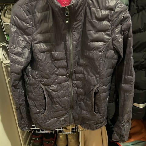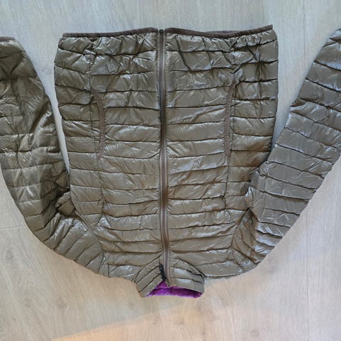 Tynn grå boblejakke fra Jean Paul, str. L. Et lite hull på baksiden av jakken, men den kan fortsatt brukes.