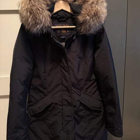Woolrich Arctic Parka i sort med avtagbar pelskrage, ikonisk og stilren vinterjakke. Brukt èn gang, så fremstår som ny.