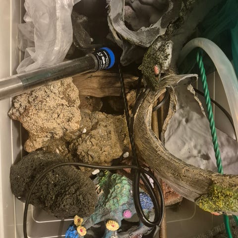 Akvariepynt, en tønne med figuer selges samlet for 75k