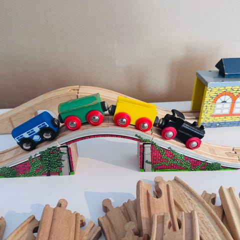 Her har man mye spennende og morsomt å bedrive tiden med, enten man ønsker å bevare det og beholde det selv som voksen eller om det er noe for barna. Vi har alle vært barn engang og dette togsettet kan glede alle og enhver uavhengig om det blir brukt eller om det skulle være kun til pynt, brukes under fotografering/"photoshoot", oppstilling i bakgrunn til et kreativt oppsett eller til ens egen samling. Kjenn på nostalgia og den barnlige gleden. Lek og ha det morro! Tut tut!! 🚂