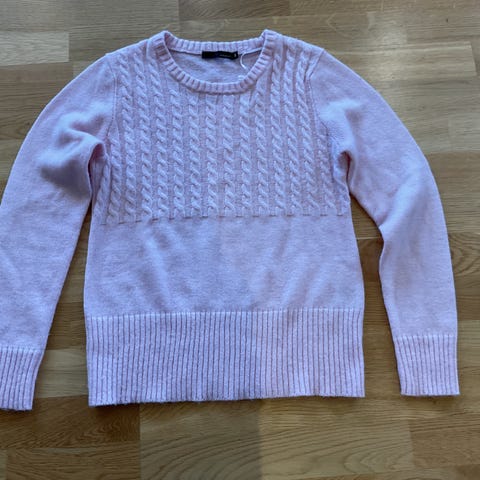Selger en genser fra Zavanna i str S. Den er offwhite og er en lang modell. Det er flettemønster, ribbestrikk i hals, ermer og nederst. Pent brukt. Se bilder for nærmere detaljer.