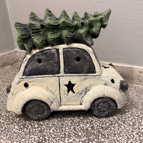 Julepynt julefigur Rød Julebil med juletre stor med snø