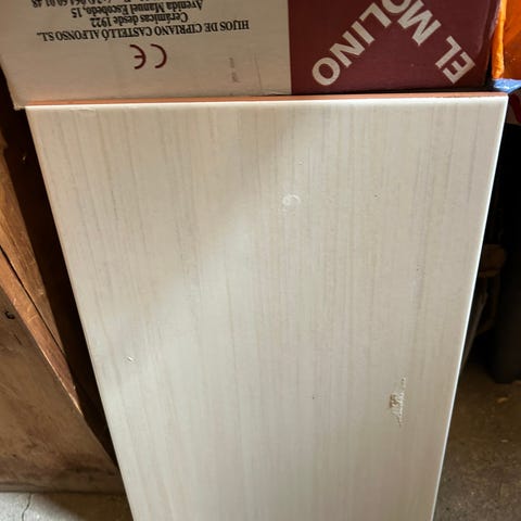 Har en nesten full eske med biselado blanco fliser. Mangler kun 6 fliser fra å være full eske. Bare å ta kontakt for mer info og bilder.