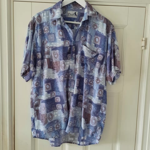 Ny - Retro lys blå / beige herreskjorte, Creation Pierot French Style. Str. 41.