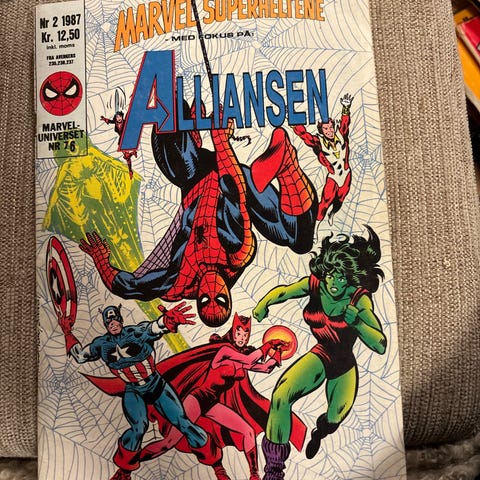 Forsiden på dette spiser-man bladet viser blant annet green goblin. Bladet er en del av Marvel universet