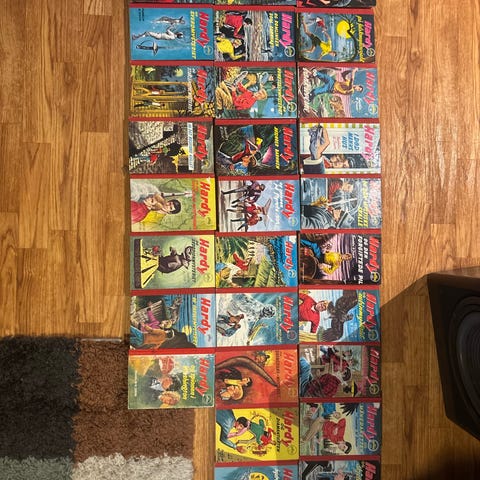 Disse bøkene har blitt lagret pent og de fleste har plast trekk. De fremstår som pent brukt :)