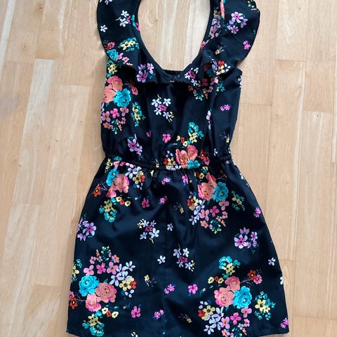 Selger en pen lang topp / tunika fra Primark i str XS. Den er ermeløs og flerfarget. Den har bred strikk med volang øverst og den er lett utsvinget. Den er ikke brukt, men emballasjen er dessverre borte. Ble litt krøllete under flytting. Se bilder for nærmere detaljer.