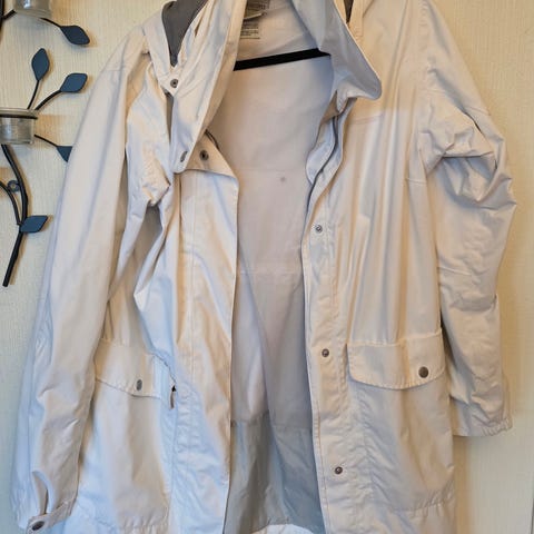 Regnkåpe fra Tretorn, pustende og foret. 2 innerlommer med glidelås. Utenpålommer med klaff. Størrelse XL - liten i størrelsen. Brystvidde 115 cm
