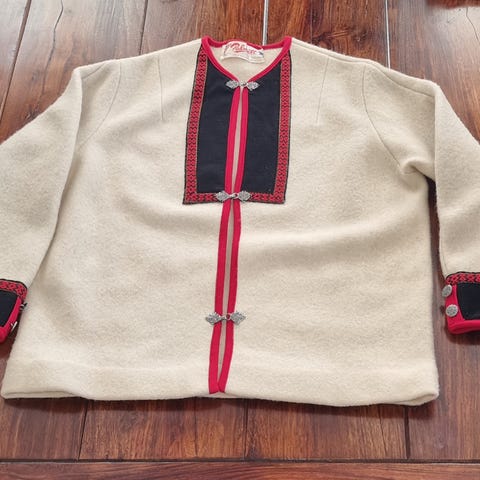 Nydelig ulljakke fra Tulip og Tatamo i herlig farge med detaljer i kontrastfarger. Feminin i snittet. En jakke du blir i godt humør av å ha på deg. Størrelse: S/XS. Meget pent brukt og fremstår som ny. Kan sendes.