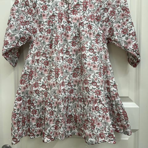 Selger en nydelig pudderrosa kjole med mønster, brukt kun 2 ganger – ser ut som ny.