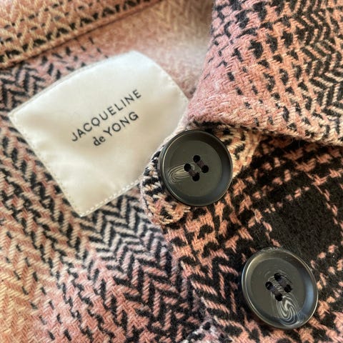 Veldig nett midjelang jakke. Str 40. Har sydd inn innsnitt over bryst( på vranga, så det syns ikke forran) ble nettere da. Detaljer på siden. Vises ikke så godt på bilde.