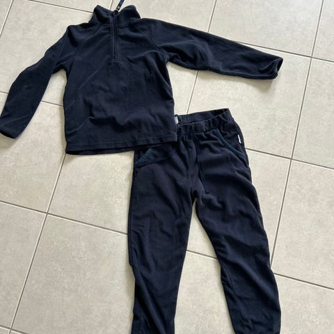 Pent og lite brukt fleecesett str 116. Genser med glidlås og bukse. Brukt kun som reserve. Hentes eller sendes mot porto
