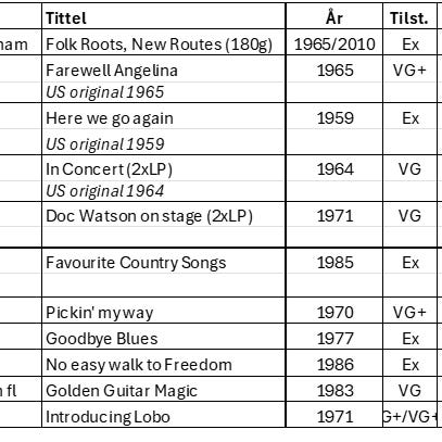 Alle LP-platene på denne listen er i kvalitet fra VG til EX/NM.