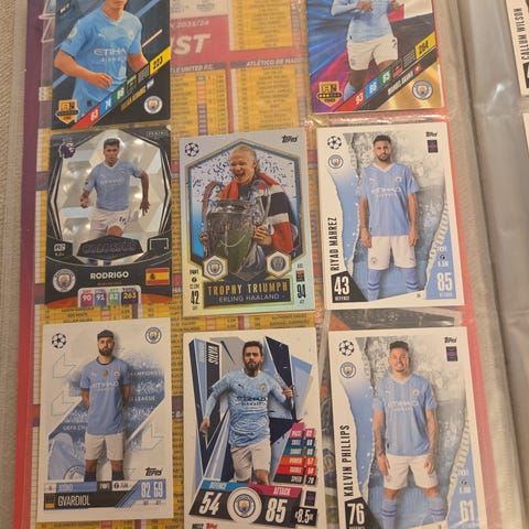 Jeg har blant annet en del fotballkort av norske spillere som Erling Haaland, Martin Ødegaard, Oskar Bobb og Antonio Nusa. Samt kort fra nyere serier som Topps Premier League 2026.