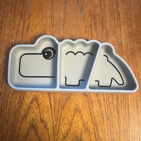 Superpraktisk og søt silikon tallerken som er inndelt i to deler – lite rom for snacks eller dessert. Runde kanter gjør det enkelt for den lille å få opp maten. Press tallerkenen mot en glatt overflate for å hindre at barnet kan dytte eller kaste den til side. En klaff som gjør det enkelt å løsne tallerkenen fra bordet er skjult bak øret til Elphee. En perfekt tallerken, når det er på tide å lære å spise på egen hånd!