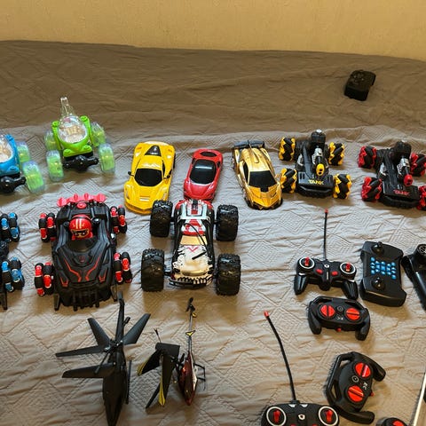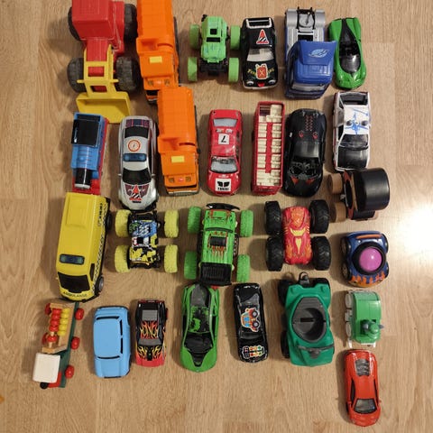 5 Toy state kjøretøy. Biler, helikopter, buss m.m. Pent brukt. Sendes mot porto.