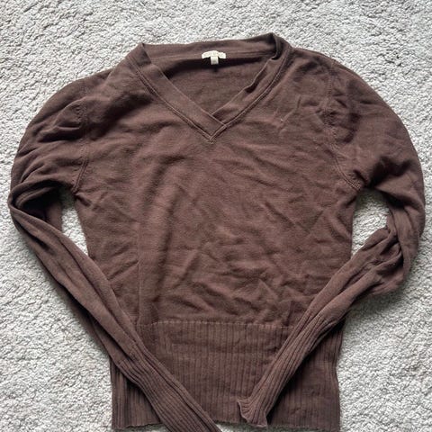 Klassisk og stilren genser fra Caddis Fly. Str. S. 75% viscose. Dyp nydelig burgunder. Veldig fin strikk og kvalitet. «Stolpen» foran har tynnere strikk og gir det lille ekstra. Ny pris 1100.-. Som ny. Kan sendes. Kjøper betaler frakt.